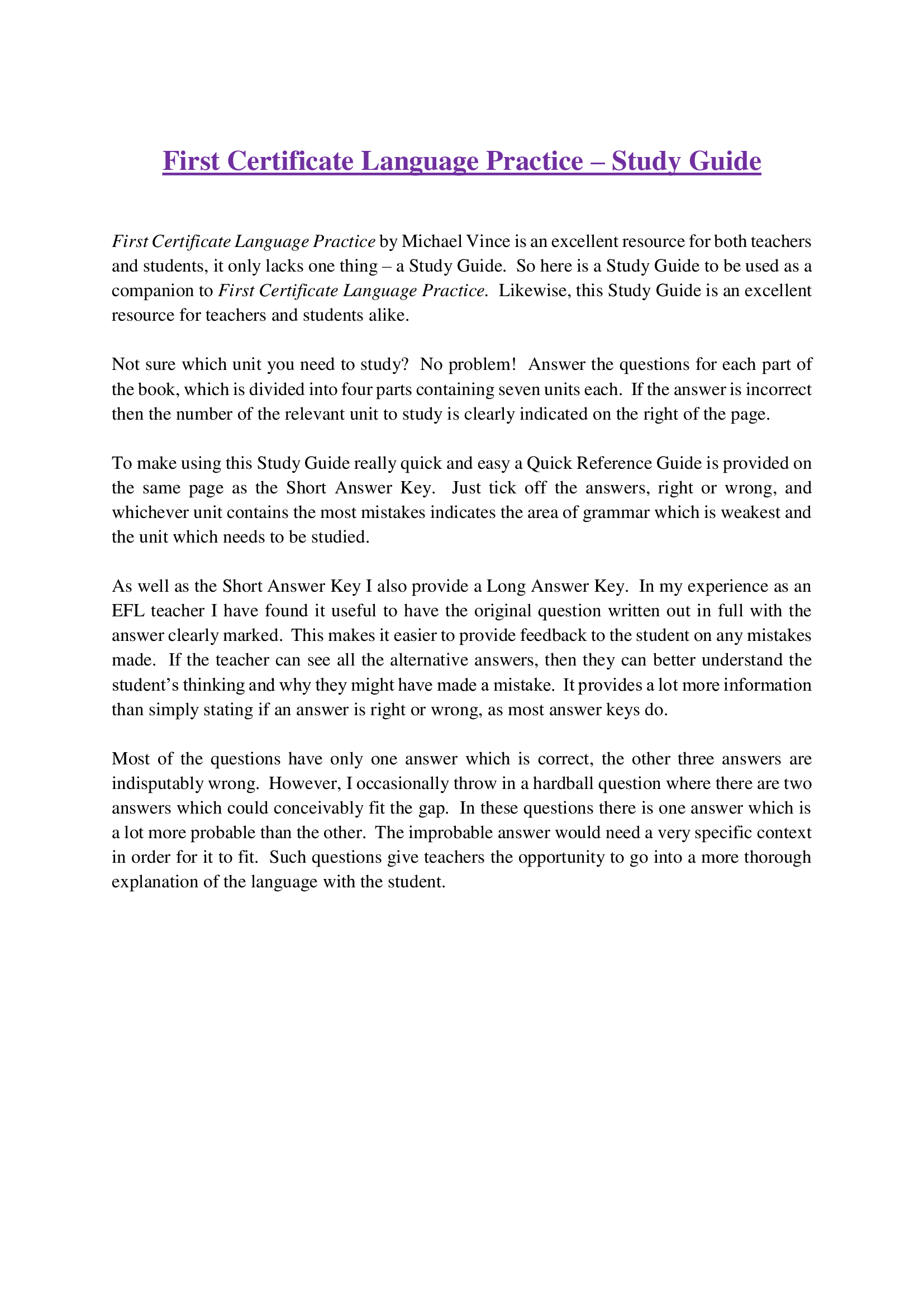 First Certificate Language Practice lacks a study guide, so one is provided here.